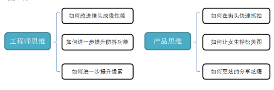 真正的痛点能让用户感到惊喜。 2.3 体验 用户体验大家都会说,但把考虑用户体验变成习惯确实需要时间,不是说作为产品经理要时时刻刻以用户体验为第一,而是当你从一个程序员想产品转变的时候,要养成从体验的角度出发去思考。当拿到一个产品,需要你做出评价时,比如我第一次面试爱奇艺时,面试官让我评价一下爱奇艺的弹幕。我从字体颜色、位置、大小以及滚屏速度几个方面进行了表述,但面试官最后告诉我说,他希望我评价的是感受、解决了什么问题以及使用时有何问题等等。而我还是下意识的在思考技术实现的方面。 2.4 价值 进入产品行业,还有一个重要的转变就是,要思考产品的价值。要从过去考虑如何实现,多久实现产品变成,这个产品能为用户做什么,推广后能否获得广泛用户好评,最后能否创造收益,这些是产品的价值。很多产品虽然项目开发成功了,但是产品本身却无人问津,惨淡收场。因此思考价值,是产品思维的一个重要方面。 产品能否成功,首先要看产品价值在何处,是否具备独特的卖点。如果和别人没有区别,那么价值何在。比如百度在初始阶段,向外国人介绍产品时,用了一句话形容自己:最懂中文的搜索引擎。这就是百度的价值。暴风影音的介绍:什么格式都能播的媒体播放器。当然现在各类播放器都能做到这一点,暴风影音的价值就远不如从前。这也从另一个方面说明了,产品要想成功,一定要有自己的价值。因此作为产品经理,要多思考价值。 3. 工程师思维 vs 产品思维 上面也提到了一部分,工程师思维和产品思维有着区别,一名技术开发人员想要具备产品思维,首先要知道他们之间的区别。