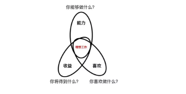 一个传统意义上的理想工作是三个因素的交汇,喜欢,能力和收益。