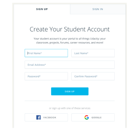 图片来源:Udacity 避免使用隐私警察协议确认的复选框 而不是复选框,使用带有关于接受条款和政策的链接的文本。
