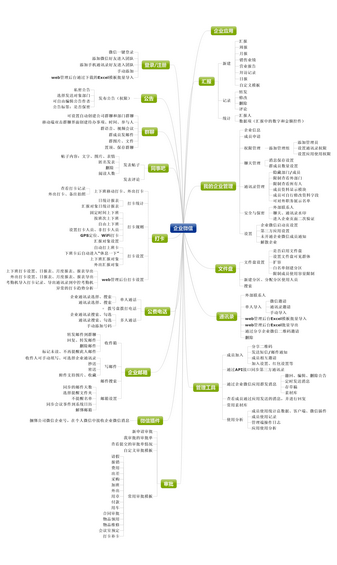 2. 审批 企业微信审批目前支持多模板审批、自定义模板审批,模板内容及控件基本满足大部分企业的需求,后台也有对应审批模板的审批记录查阅。而且审批中出差、补卡等审批可以直接关联打卡。但目前的审批模板设置的时候,没有一个比较好的设置引导/文档,来引导用户去设置审批流程。 企业微信还把假期设置功能放到了审批后台里面,目前默认支持多种假期设置以及自定义假期设置,但假期额度无法按特定公式自动灵活计算,只支持固定模式计算额度,对于那些按照入职时间算年假等假期的公司就只能每年手动导入假期额度了。 3. 汇报 工作汇报是一个神奇的功能,正常的汇报是用来做一些工作计划/总结的功能,但也有企业用汇报来做门店销售汇报以及补货申请等等各种奇奇怪怪的用法(你永远不知道你的用户会怎么使用你的产品)。 目前汇报支持汇报、日报、周报、日报、销售业绩、营业报告、客户拜访等特定模板以及自定义模板等汇报功能,其中汇报模板中的数字和金额控件,会自动在后台进行统计(销售金额、销售量等),同时后台支持查看各模板汇报统计结果。 4. 公告 公告,一般用于企业发送集体通知/发文所用。此类应用对保密性和分享的权限有着严格限制,企业微信支持公告不允许分享、公告附件、公告带链接、公告封面等功能,权限设置上,可以设置公告查阅范围。 5. 文件盘 企业微信的文件盘,就是企业文件网盘,用于企业文件保存和共享。文件盘可设置文件夹共享权限,以及成员开通权限。 6. 同事吧 同事吧-企业微信的“朋友圈”,企业内部的交流论坛。超级管理员可以在APP端删除帖子,最新的企业微信更新中,支持外部网页内容/公众号文章 分享到同事吧。 7. 连接微信 连接微信,这个企业微信独有的最具特色的功能。除了基础的企业微信的信息能够通过企业号发到员工捆绑的个人微信上,企业微信里面的打卡等高频使用的应用,可以通过小程序的方式直接在微信上使用,对于员工而言,不用特地开启另外一个APP,也不用担心遗漏工作的消息。 新的连接微信的内测功能中,企业微信账号不仅可以直接添加微信好友,与微信用户互发消息,后续还支持群聊。不仅如此,员工离职之后,企业可以留存员工加的微信客户,实现员工离职,客户不走的想法。emmmm,这很对boss层的胃口,目前企业微信还支持微信小程序在企业微信中运行。 企业微信的slogan是“让每个企业都有自己的微信”,可以预见的将来,连接微信是企业微信团队要打磨的核心功能,微信已经给了我们太多的惊喜,那么企业微信会给我们带来什么样的惊喜,拭目以待。 8. 强大的后台连接功能/连接第三方应用 这是腾讯做“连接器”理念的体现,这在微信里面体现的淋漓尽致,微信通过九宫格、公众号、小程序等连接了大量的政务、企业、个人开发的应用。 而在企业业务中,除了定制开发的软件,市面上很少有一款软件能真正完全满足企业的需要,这是toB业务的特性所在,想要通过一个公版的应用,来满足大量的企业用户,这是不现实的。 企业业务里面充斥着大量的个性化业务/内容,企业微信想要做企业的移动办公平台,就必须要能像积木一样去连接各种各样的企业应用。 所以企业微信从上线开始就一直在打磨接口对接,这在每个版本的更新日志中都能看到“支持通过JSAPI调用XXXX功能”类似的更新日志,在普通用户看不到的地方,企业微信做了大量的数据对接接口,来连接企业自身的应用,这也是企业微信能拿下80%中国五百强企业的原因所在。 当然企业微信,同时也提供了很多大量的第三方应用供企业选择,例如:石墨文档。 当然,这也需要企业有着较强的研发能力,这对普通的中小企业可能是个不小的负担,所以在最新的企业微信的各种论坛峰会中,已经有意识的降低在企业微信中连接第三方应用/开发企业微信应用 的难度。 未来,企业微信要下沉到中小企业的时候,这个功能还需要持续的优化,不过有微信这个先驱者的经验在前面,能少走不少弯路。 商业模式 一般情况下,toB的企业产品都是产品收费+有偿线下服务。产品有很多种收费模式:按软件模块收费、按注册使用用户收费、特定模块的使用数量收费(公费电话、企业网盘等)、私有化部署等。由于中国的企业级产品服务市场尚未成熟,无论是用户付费意愿还是产品收费模式,都还处于初级阶段。 目前来看,私有化部署是付费金额最高的,且这类用户的付费意愿也比较高。 除了产品费用,线下服务也是企业级服务市场的重要收入。企业级产品不同于toC业务的产品,企业级产品经常需要各种的咨询/培训等线下服务。所以培育自己的合作伙伴/代理商,是每个做企业级服务企业最核心的功能之一。伙伴的数量和质量,直接影响产品对用户的覆盖以及用户对产品的体验。 总结及建议 企业微信有着与微信一致的沟通体验,这降低了用户上手难度和操作门槛。企业微信发挥着腾讯“连接器”的理念,连接企业内部自用软件,满足企业个性化管理需求,为企业管理提供便利。连接微信,连接企业内外,让员工能更高效的完成工作。同时,提供私有化部署满足部门需要数据本地保存的政企客户的需求。 如果我是PM: 目前企业微信发力于大中型企业,以微信一致的体验,打造企业的连接器。未来,企业微信需要继续打磨后台连接接口,更好的连接微信,连接微信