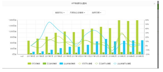 产品排名 艾瑞指数-月度独立设备数(竞品:阿里钉钉、金蝶云之家):
