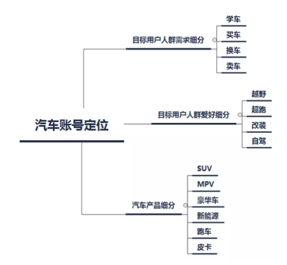 以上每一个细分领域都可以作为汽车类账号的定位。