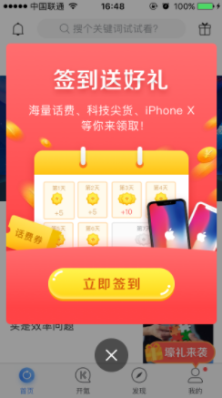 这就是所谓的产品驱动运营,产品本身就有让你每天签到的基因。不过,前提是产品能很好的满足你的某一个需求,用户体验要好,不然自带的签到基因也是毫无价值可言。 3.3 结合积分系统 可结合APP本身的积分系统,用户可通过签到获得更多积分,签到所得积分,可以用于在其他商城抵扣现金券。激发用户签到的动力,引导用户长久的进行签到。 (1)优盟“签到赏金” 优盟APP的签到活动形式,签到入口是从APP首页直接跳出,以APP首页入口展示给用户,使签到率得到很大的提升。进入签到页面,显示用户签到天数,并罗列出签到可获得的奖励内容,提高用户签到的活跃度。且用户通过签到获得积分可以在APP内兑换商品或享受商品折扣,对于用户来说可以将积分变得更有价值。