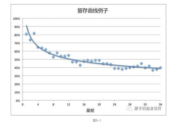 一周后,可以留住80%的用户。一个月后,可以留住65%的用户。两个月后,可以留住55%的用户。长期看,会留住约40%的用户,并且每月的下降速度非常缓慢。