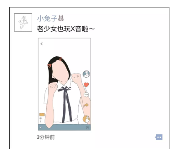 她迅速爱上了用手指舞和学猫叫来展现自己的表演和舞蹈天赋。虽然 X 音视频已经被禁止直接分享到朋友圈,但她仍然坚持充当着互联网公司之间的友好桥梁。