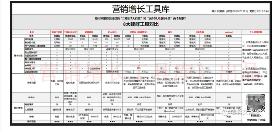 二、进群冷知识 6、以下三种情况,进群链接会失效:群邀请已超过7天;发邀请的人已经离开了该群;邀请人撤销了邀请。 7、拉人进群时,前40位群友可以直接邀约,不需要对方同意,第41人起需要对方接受邀请才可以进入,一直到第500人。 8、群聊超过100人时,对方须通过实名验证才能接受邀请。(海外账户不受限制) 9、微信群二维码有效期为7天,超过100人无法扫码进群,如果要使发出去宣传的二维码永久可以进群,可以使用活码切换方式来解决,以下是我整理的8种建群工具对比图,玩转社群666公众号后台回复“建群工具”可获取高清源文件。