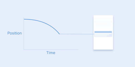 缓动减速曲线 当元素从屏幕外运动到屏幕内的时候,动效应该遵循这类曲线的运动特征。从全速进入屏幕开始,速度降低,直到完全停止。