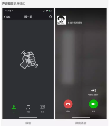我们可以通过声音和震动的形式对用户进行反馈,例如:我们输入文字时,每次点击都会有声音的反馈,告知用户点击到了手机中的键盘。还有微信中的摇一摇,会有咔嚓咔嚓的声音。