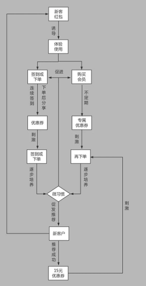 这样子,通过让用户进行一些简单易操作行为(如登录签到),并给予对应正向反馈(如不同优惠额度的优惠券),那么用户就会无意识间形成微习惯,有助于用户留存与促活。