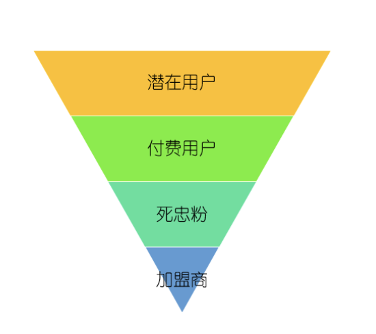 这个服装品牌的用户生命周期划分,我的思路是,从未付费用户到付费用户,再到复购用户,加上我们需要以低成本获取加盟商,所以从复购用户中,还会有一个漏斗来过滤加盟商。