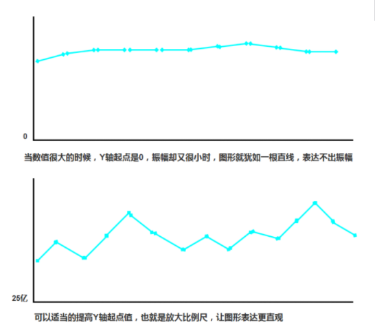 单位数值很大,Y抽起点是0,振幅却很小时,图形表现就犹如一根直线,很难看出变化。所以需要把起点值设置的更高,比例尺放大,就可以看出趋势了。可以在使用过程中根据实际情况来优化。
