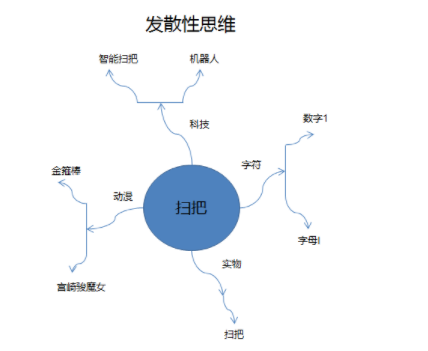 分析: 发散性思维指的就是在人解决问题的思维过程中,对某一问题的解决,要求产生多种可能的解决方法,而不是单一方法的思维方式。又或者是人对一种事物,不止有一种看法,通过联想可得到多种不一样的结果。如下图所示。