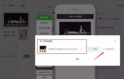 甚至,可以直接将“永久预览链接”推送到手机,但前提是必须关注该第三方插件公司的公众号。