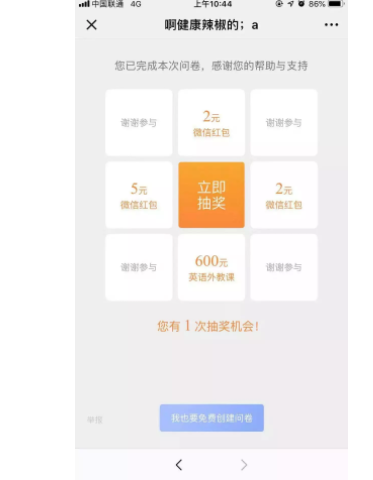 比如你填完一份问卷,填写成功的页面就会出现这么个东西: