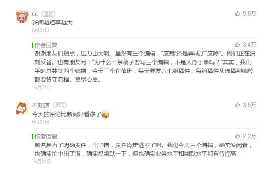 而这样的高搜索高曝光,正是来源于精彩的评论区互动。而我们回过头去看一下关于新媒体运营的定义——利用相关新媒体平台,采用内容等一系列运营手段,加大对品牌的曝光与宣传,并产生营收。 以此可见,新华社当天的评论区运营是非常成功的。 (3)补充说明 新华社这篇文章当天还有了一个乌龙,那就是把“废黜”写成了“废除”。当产生相关质疑后,小编第一时间置顶评论并多次进行回复,包括更正说明以及道歉回复。