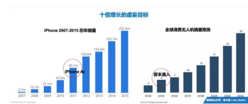 同样,以无人机行业为例,大众以为的行业爆发是2015年。但实际呢,市场只是在线性增长而已。