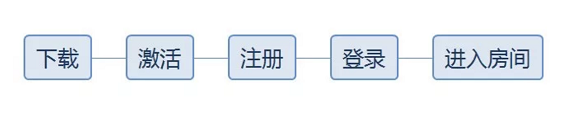 其实几个方面的原因肯定都有。 引流渠道肯定需要不断试错,然后找到最适合自己产品的流量来源;品牌的知名度打造,也需要市场部/品牌部的发力,逐步建立产品的品牌知名度;而流程过于复杂,则需要产品运营来优化处理。 这些都是我们可以着手去处理的,也必须去处理的,但是什么该优先什么该滞后呢?如何确定每件事的优先级? 经过内部讨论,我们决定优先从优化流程开始。因为这一块内容是最容易由我们把控全局,且最容易数据量化对比的。 3、讨论结束后,立即开始动手。 我们将新用户的原使用过程先用流程图表示出来。 下载-激活-注册-登录-进入房间