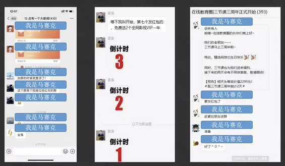 ▲针对产品小白人群的一份“30天小白学习计划” 以下是顾银老师介绍的几种提升社群服务的方式,可供参考: 最简单暴力:红包活动 红包活动是最简单暴力的方式,但红包活动也有一个讲究:不要纯粹地进行红包发放。红包是吸引关注的利器,如果不能借助这个关注来做一些曝光,那么它的价值就会大幅度降低。 在这次分享会中,顾银老师就介绍了几种趣味红包玩法的案例,比如: ①线下烧烤店社群每天定时进行红包活动,抢红包最高的人可以获得免费喝啤酒的资格。 ②线上活动类社群在活动即将开始的节点发红包,吸引大家的注意力,让大家知道活动就要开始了。 ③商品营销类社群送出一定的福利,让群友们自己发红包烘托氛围,比如说送出两个全网影视VIP会员,第七个发出红包的群友能够获得。这样就可以调动起大量群友来发红包。 ▲顾银老师在分享会上所展示的社群服务案例 定期提升活跃:常规性活动 常规性活动最大的特点是可以作为社群文化建设的一部分有规律地策划运用,为社群的整体氛围和成员的归属感提升贡献一份力。 比如说少儿相关的社群当中,大部分入群成员都是家长,在平日没课的时候如何借助常规活动来调节氛围呢?很简单,只需借助一些中年人普遍喜欢的趣味小活动就可以调动起他们的积极性。 知识付费的常规活动毫无疑问就是作业和打卡了,去年有书发起的21天打卡活动被曾被无数知识付费社群竞相效仿,这样的方式除了能够调动社群的氛围外,还能为社群提供大量的UGC资源,因此受到了广大社群主的喜爱。 商品营销类社群也会发起诸如多人拼团、好友砍价等促销活动,一方面是为了对商品进行促销,另一方面也是为了把社群炒热,为后续的社群营销造势。 周期性活动:定期直播 除了组织活动之外,定期进行直播讲座也是常见的社群服务方式,很多知识付费、电商营销相关的社群主都会通过社群直播的方式来进行授课。直播授课的方式除了能够输出社群价值外,还能拉近社群主与群成员的联系,增强他们的信任感。 顾银老师就介绍了一个律师社群的案例,这个律师社群在每周会有固定一个小时的免费答疑时间,社群主利用这一个小时的时间免费解答社群成员的疑问,其他时间段如果想要找律师进行法律咨询,则要通过添加微信的方式来进行个收费咨询。 免费咨询讲座的意义,一是在于切实能解答社群成员的一些问题,增强他们的粘性;二是可以充分律师的专业度,当后续社群成员有一些紧急的法律问题需要咨询时,他们就会第一时间想起这个社群有一个水平很不错的律师可以咨询,这样就完成了社群的转化。 在分享会现场,有朋友给出了这样的疑问:活动确实能带来社群活跃度,但活动过后社群又会回归沉寂,这该怎么办呢? 顾银老师给出的解决方案是:①准备好“弹药库”,将一些好玩的小视频、小段子等储备好,在需要活跃社群放出。②培养几个核心用户,让他们在适当时机出来冒泡活跃社群。