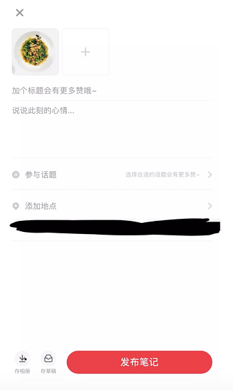 其次是地点,不知道你有没有发现,小红书的推荐其实是有lbs推荐的,所以如果可以的话,地理位置也要选择,这将会让你得到更多的流量。