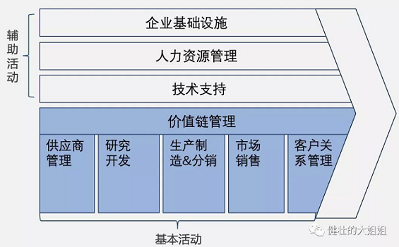 你的产品,是你能驾驭的价值链的长度、力度和精准度。打造产品的价值链才是护城河。 什么是价值链? 这是哈佛大学商学院教授迈克尔·波特在1985年提出的概念: 每一个企业都是在设计、生产、销售、发送和辅助其产品的过程中进行种种活动的集合体,这些互不相同又相互关联的生产经营活动,构成了一个创造价值的动态过程,即价值链。