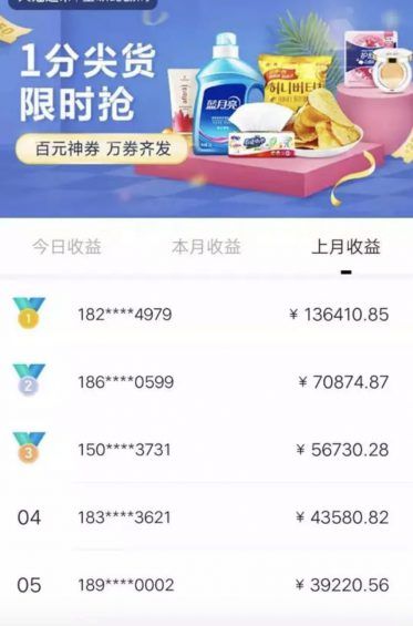 在芝麻鲸选的排行榜上可以看到,收入最高的推客,上月收入是136410元;排行第二和第三的,上月收入分别是70874元和56730元。