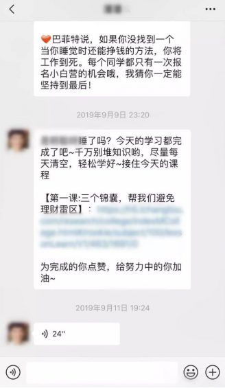 长投学堂的付费课程社群中,也会有专门的班主任进行私聊,内容包括通知上课信息,发布学习资料,关心上课效率以及学习问题,并对其产生的问题及时解决。