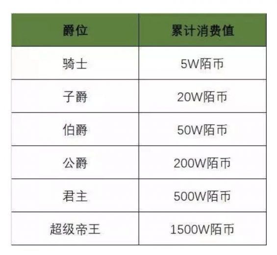 贵族等级则是根据充值来定的,月度充值越多,则相应等级越高;贵族等级是可逆的,即月充值不达固定金额则会降级。