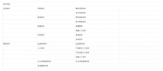 成本量化运营指标 在成本量化过程中,首先第一个目标是明确平台运营的成本构成,我们是按照如下表格进行成本核算,主要是分清楚我们花了多少钱,都花在那,怎么分摊的。