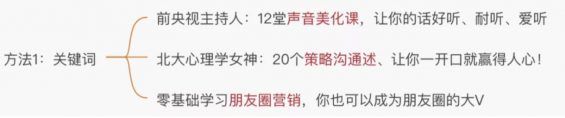 图中我举了几个例子,他们的关键词都特别突出,我都标注了出来,这个时候你也可以反观一下自己的课程,你的课程的关键词到底是什么,有没有。