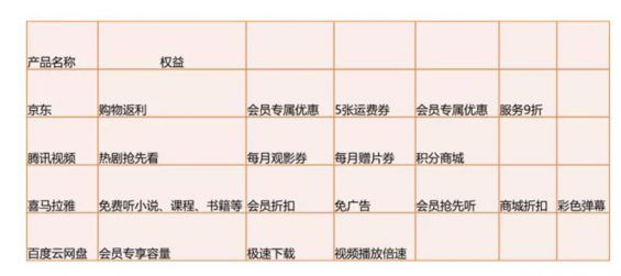 以下是列举出来的一些典型产品的会员权益。