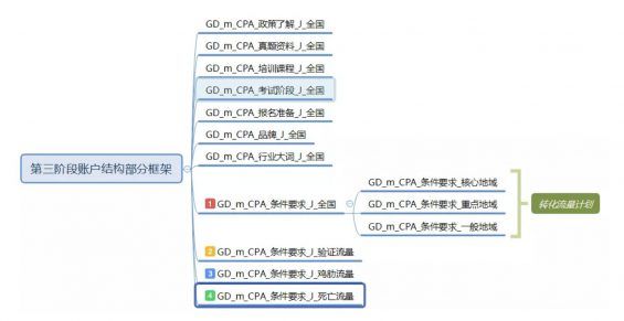 还是以在线教育CPA项目为例,附上第三阶段规模化放量的账户结构: