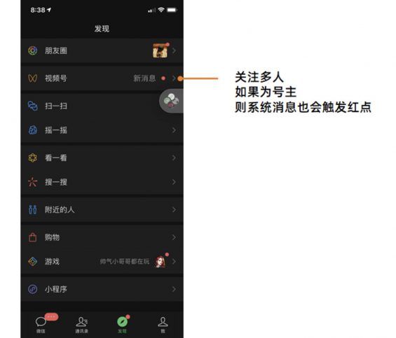 1、视频号入口 iOS和Android一致,在「发现」tab第二列,朋友圈下方。 当关注多和只关注1人时,呈现的效果不同,看图: