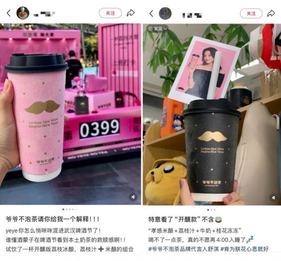 如今,各大商场里人流最密集的场所,未必是海底捞,但一定有爷爷不泡茶。 在小红书上,不少年轻人排队4小时,只为买上一杯时尚单品“荔枝冰酿”;有人为了打卡领周边,不停催促店员加快做奶茶的手速;还有人争着和门店舒淇的人形广告牌合影发微博。似乎谁先靠近爷爷不泡茶,谁就成了全网最受羡慕的仔。