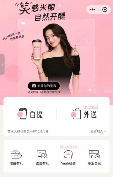 爷爷不泡茶采取的社交营销其实是一种高效的获客工具。秒针调研数据,近三成消费者坦言热搜能有效激发对饮品的讨论欲,品牌热搜对消费决策的影响力在营销手段中高居榜首。 不管是揣度年轻人的心思上联名,还是请当红小生小花代言,本质上都是为了给消费者一个购买理由。 爷爷不泡茶的具体做法有三种: 一是在产品和经营里融入社交玩法; 荔枝冰酿上新后,爷爷不泡茶在线上推出了“笑感”小程序,用户只需上传笑脸即可兑换奶茶,为年轻人送出一份松弛与欢愉。