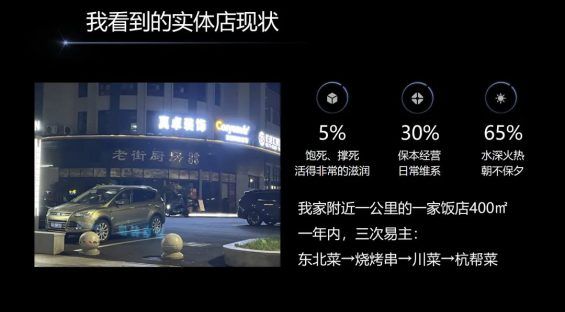 比如我住的人民广场附近有一家店,一年换了3次老板,东北菜、烤串、川菜、杭帮菜都试过了,还是做不起来。