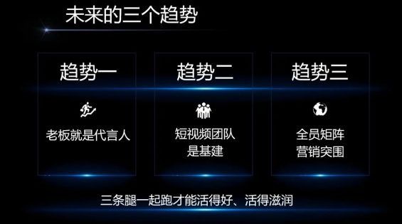 第三,全员矩阵,用有效脚本让员工做矩阵营销,打败周边同行。只有这三条腿一起跑,企业才能活得好。