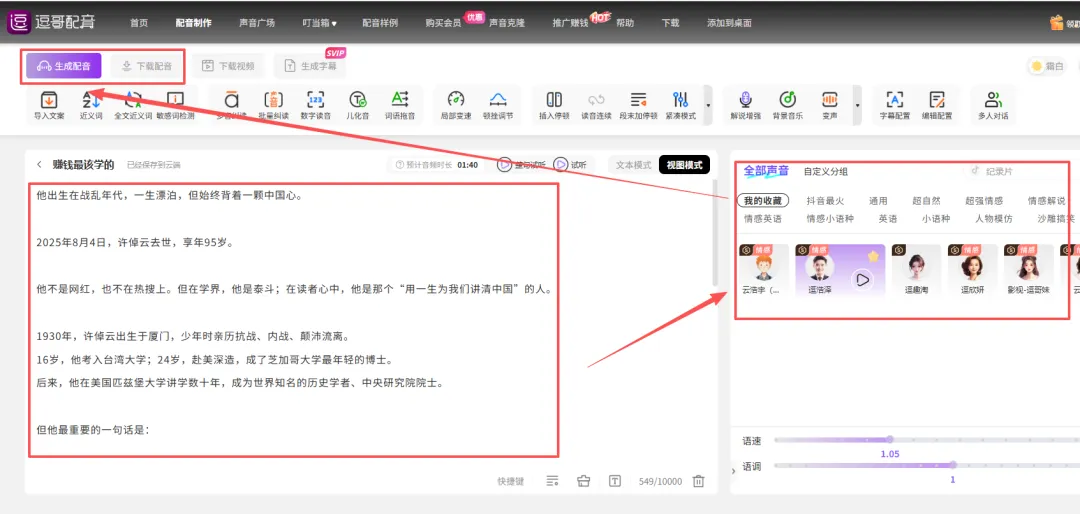 准备好一段文案,把文案粘贴在下方的工具里,直接生成,都需要开会员。 1)用逗哥配音神器生成配音