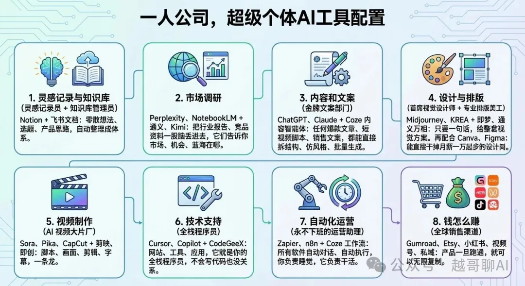 但如果回归商业本质,真正的“一人公司”并不是拒绝团队,而是将“人力团队”替换为“系统团队”。在 AI 技术成熟的今天,这不再是一个遥远的愿景,而是一种完全可以落地的配置。