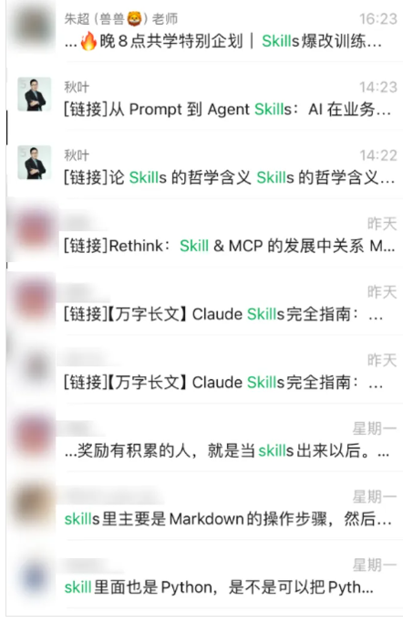 在我们信息交流群,最近聊的话题三句不离扣子 Skill !!!