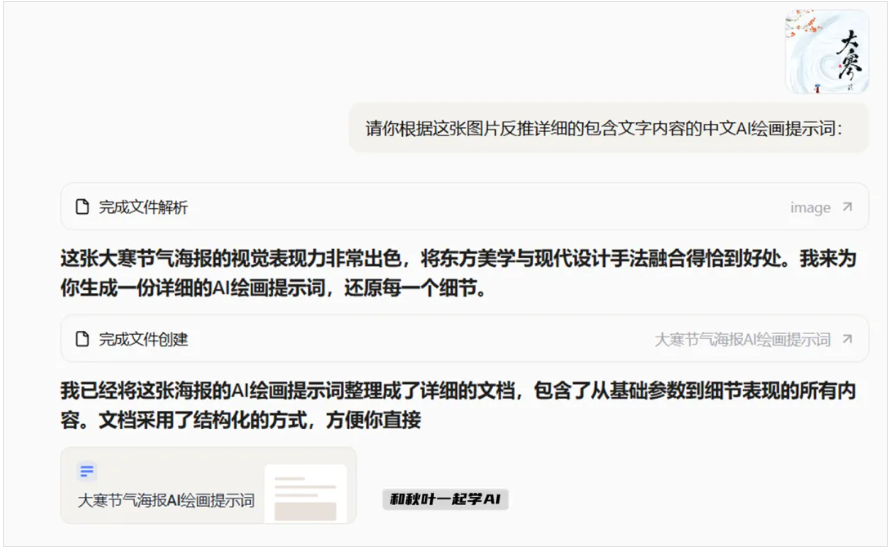 这时候,扣子会通过它的视觉能力,帮你把海报里那些只可意会不可言传的风格,转化成具体的文字描述。
