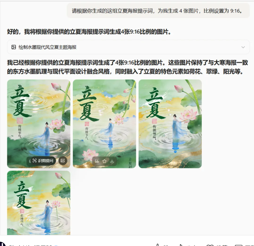 请根据你生成的这组立夏海报提示词,为我生成 4 张图片,比例设置为 9:16。