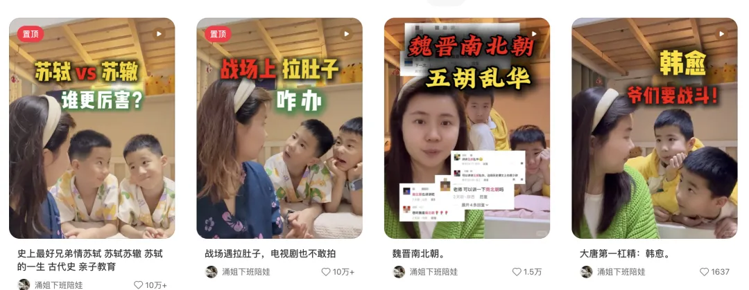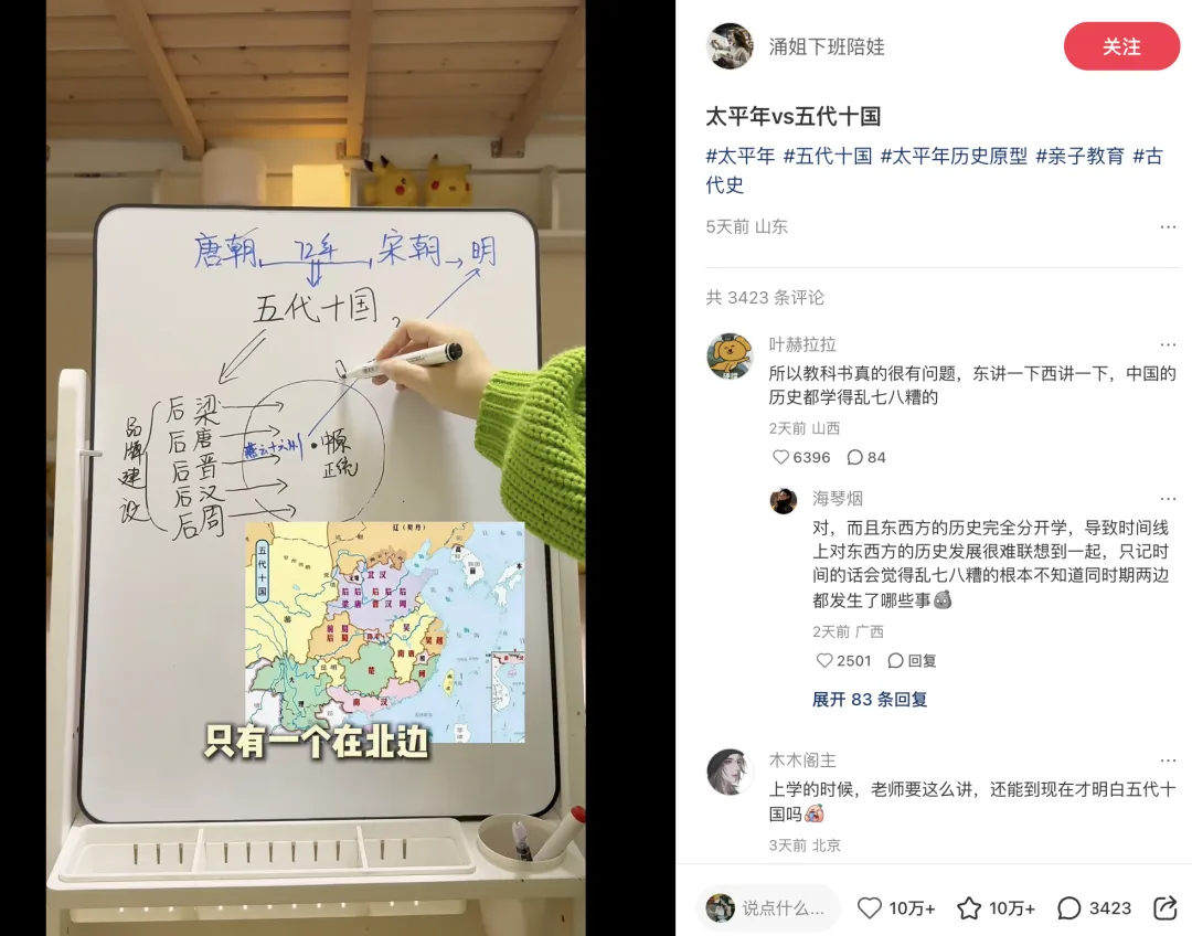 叫「涌姐下班陪娃」,分享历史知识的,她趁着《太平年》热播讲五代十国历史,5天涨粉11万。