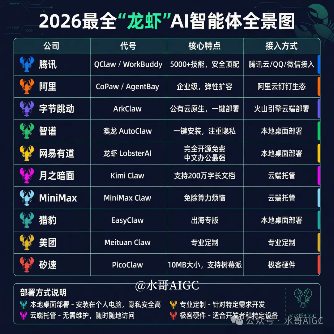 一、2026最全10大OpenClaw 龙虾AI全景图
