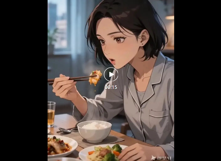 在提示词里简单写一句:严格参考人物形象,按照分镜生成,温暖治愈,画面稳定,1080P。