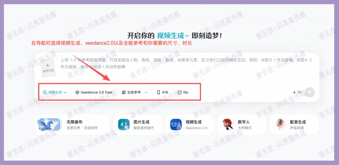 在首页选“ AI 视频生成”,这里也是接入的 Seedance。