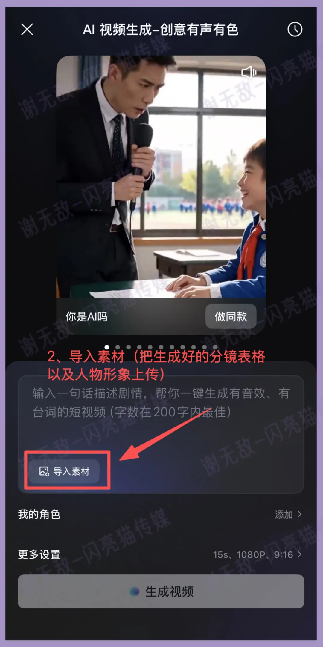 设置好之后,点击“参考内容”,把人物形象图和分镜脚本图上传上去;