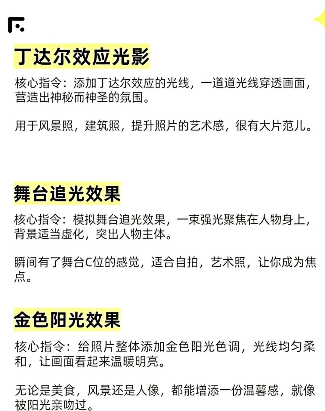 核心指令:添加丁达尔效应的光线,一道道光线穿透画面,营造出神秘而神圣的氛围。用于风景照,建筑照,提升照片的艺术感,很有大片范儿。