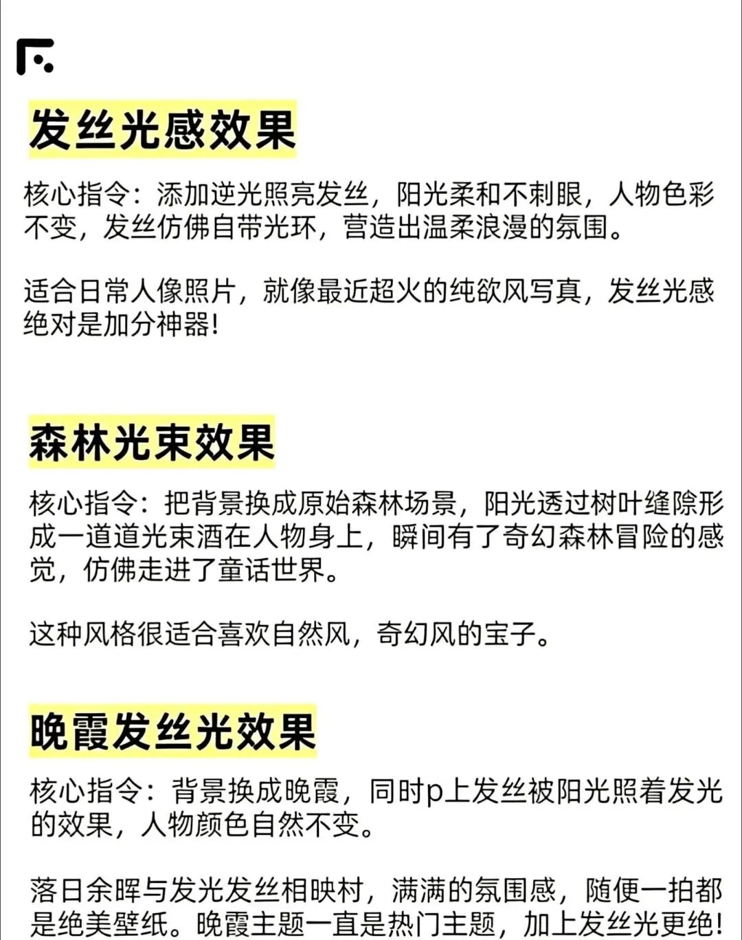 核心指令:把背景换成原始森林场景,阳光透过树叶缝除形成一道道光束酒在人物身上,瞬间有了奇幻森林冒险的感觉,仿佛走进了童话世界。 这种风格很适合喜欢自然风,奇幻风的宝子。