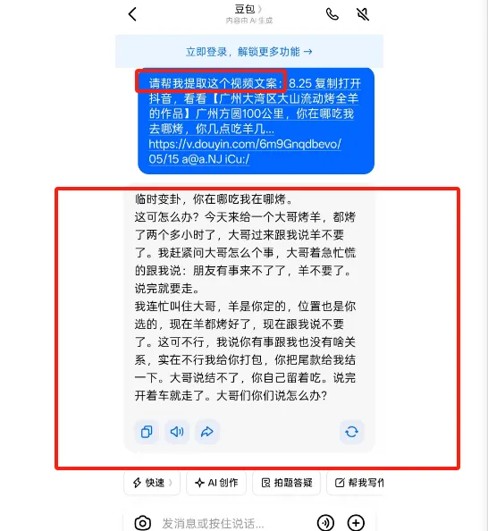 悄悄告诉你,当你通过我这里学会了找爆款,有了爆款文案,可以直接用豆包AI给我们仿写一个。