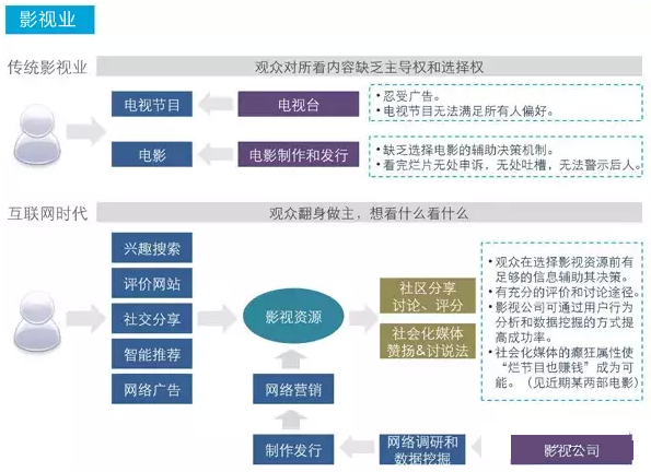 在美国,电视节目行业没有收到巨大冲击的原因在于其节目的原创质量以及美国人的习惯性依赖。但是在中国就没这么幸运,中国绝大多数的电视节目,我只能用“呵呵”来回敬。虽然少有成功的节目,但这并不能阻挡互联网来融合这一切的趋势。传统电视节目时代,人更像是被迫选择,而互联网使得人的自由选择有了可能。将选择权来了一个大翻转。 预测电视节目行业未来 第一,互联网会让电视节目行业更加优胜劣汰,互联网并非是要取代电视节目,而是要对电视节目行业进行优胜劣汰的革命。 第二,各种有创意的网络节目会横空出世,挤压这块市场。(目前搜狐自制剧就是对这块市场挤压的例子) 第三,电视节目行业也可能会有本地化的OTT情况出现。你会看到本地的一个人在录一个本地化的方言节目,无所谓好坏,这是互联网长尾必然会诞生的产物,只要时机一到便会涌现。 15、电影行业 《致青春》的成功说明了一个由互联网狂欢主导的全新电影时代的正式来临。任何电影的营销策划都已经无法离开互联网,一部电影的成败已经彻底与互联网捆绑。 谈谈互联网的要求: 第一,互联网要求电影行业也像电视节目行业那样,让更加优胜劣汰。豆瓣电影和时光网都是非常不错的产品,专门针对电影进行评论,使得消费者的选择时间得以控制。这其实也是一个很好的类似维基百科的案例。 第二,互联网同时要求打破一切话语霸权的格局,不拘一格,将一切有新意的电影推向市场。 第三,电影行业必将迎来小众化个性需求。百花齐放。 预测未来的电影行业 第一,将出现各种井喷状态,各种外行不断介入来搅局。原有的几大霸主地位降低,一个霸主地位会被成百上千的小霸主来取代。 第二,长尾小众化需求,部落化生存可能实现。未来的电影制作成本将大幅降低,一千粉丝足以使电影成功。还是像《技术元素》里说的,“目光聚集的地方,金钱必将追随“。 16、出版业 传统的出版行业在外行看来据说是暴利,不过他们自己说却是微利,因为成本相当的高,有个出版人曾经透露说他们最后只能赚10%的钱。但是未来电子书的发行成本几乎是跟他们开了一个巨大玩笑,接近0啊!亲! 传统的出版行业悲催了,因为未来除了营销策划基本没他们什么事了。但,只要转型也许还能踏上时代的末班车,还有、机会。 预测未来 第一,纸质书只会有部分还会继续存在,1、经典著作。2、个性化定制。 第二,出版商将由互联网公司介入搅局,纸质书基本消失。 第三,传统出版商若介入互联网出版行业,将会更多的以营销策划者的姿态出现。 第四,正版书籍将会受到应有的尊重,盗版逐渐消失。 第五,由于出版成本为几乎为0,所以价格会普遍走低。 第六,长尾部落化生存,广告出版电子书不足以养活作者,那么一定会有全新的赢利模式出现。 17、垄断行业 亨廷顿在《文明的冲突》一书中表示中国人的忍受能力来自于儒家文化的影响,对这种看法,我也用“呵呵”来回敬。熊培云在《重新发现社会》中表示如果中国正统文化以墨家为首可能又是一番景象,对此我依然表示很纳闷。基于我对人性的理解,我认为中国人无论使用何种文化作为正统都会被统治者篡改利用,朱元璋可以删掉孟子的君亲民贵思想,士大夫们可以拿着郭象注释的《庄子》来为自己的奴性找到合理的借口。 同样的,希特勒可以拿着尼采妹妹篡改的尼采手稿宣传纳粹主义,前苏联等可以拿着马克思的著作…….都懂的。根本原因都是基于在那些信息交流不发达的时代,任何信息都可以被当权者屏蔽过滤,将经过删选的片面的信息发出去,从而导致听众永永远远只能知道那些被过滤后的信息。而互联网的出现则彻底颠覆这样一种状态,使得任何信息都无法被过滤屏蔽,无论你是哪个国家的人,无论你是哪个名族,无论你信哪个宗教,只要你想知道信息,信息就会毫无阻挡的出现在你面前。互联网改写垄断行业的各类事件我们都有目共睹,就不举例了。 并且这种博弈会越来越多,信息会被越来越透明起来,权力与权力的制衡每天都在互联网上无声并且激烈地进行。互联网要求,透明!透明!再透明! 预测未来垄断行业 第一,基于来自互联网的压力,总部门不断分散瓦解为各个分部门,部分权力回归市场。 第二,被迫透明各种所谓机密,黑暗无处遁形。只要被拖出冰山一角,最终互联网的意志会将整座冰山全部拖出水面。 文/承哲 来源:互联网分析师公众号 |